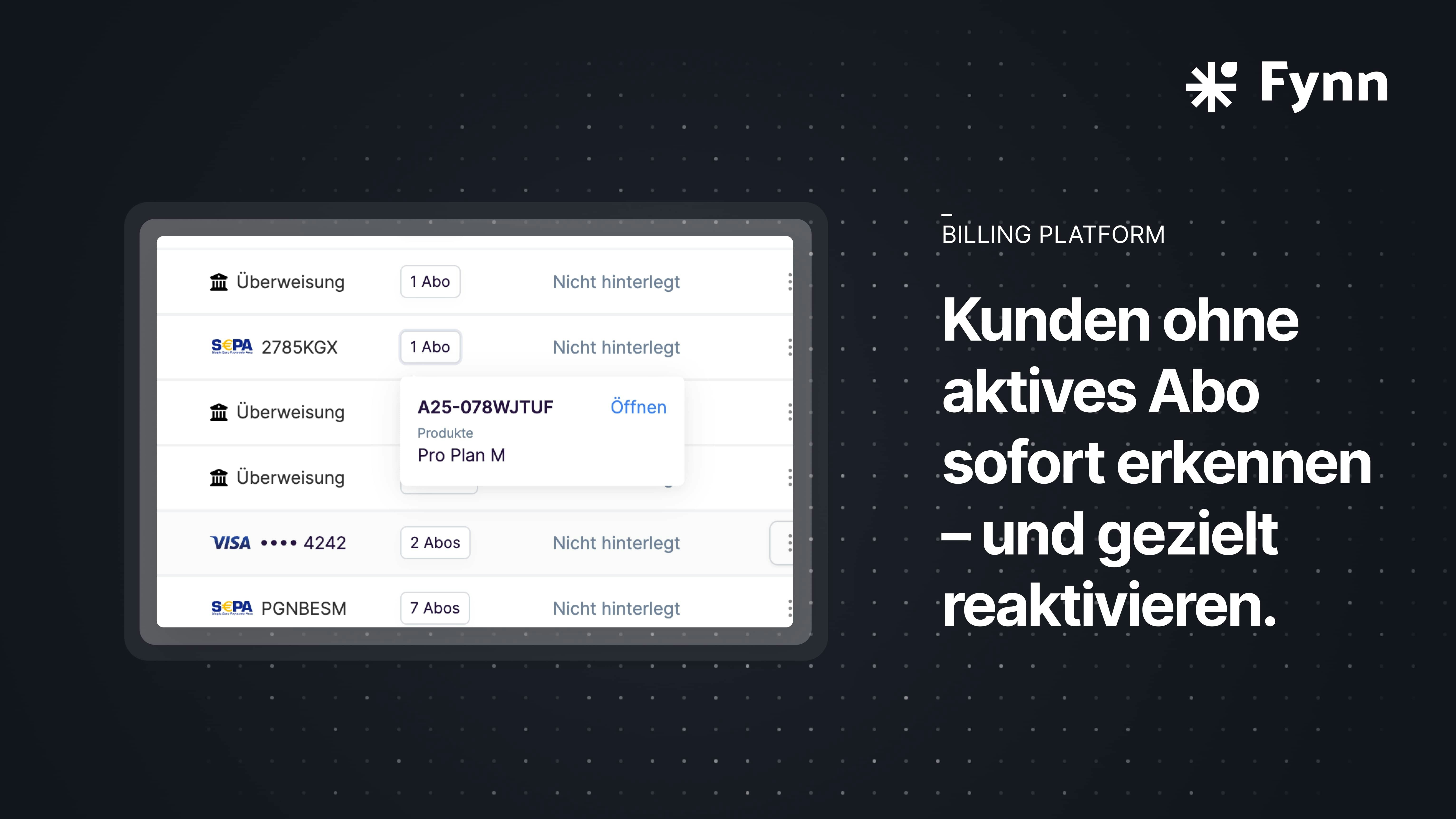 Wir haben die Filter in den Listen-Ansichten (z.B. Rechnungen, Abonnements, Zahlungen) deutlich erweitert:- Neue Möglichkeiten für Textfilter: Ist gleich, Ist ungleich, Enthält, Enthält nicht, Ist leer, Ist nicht leer