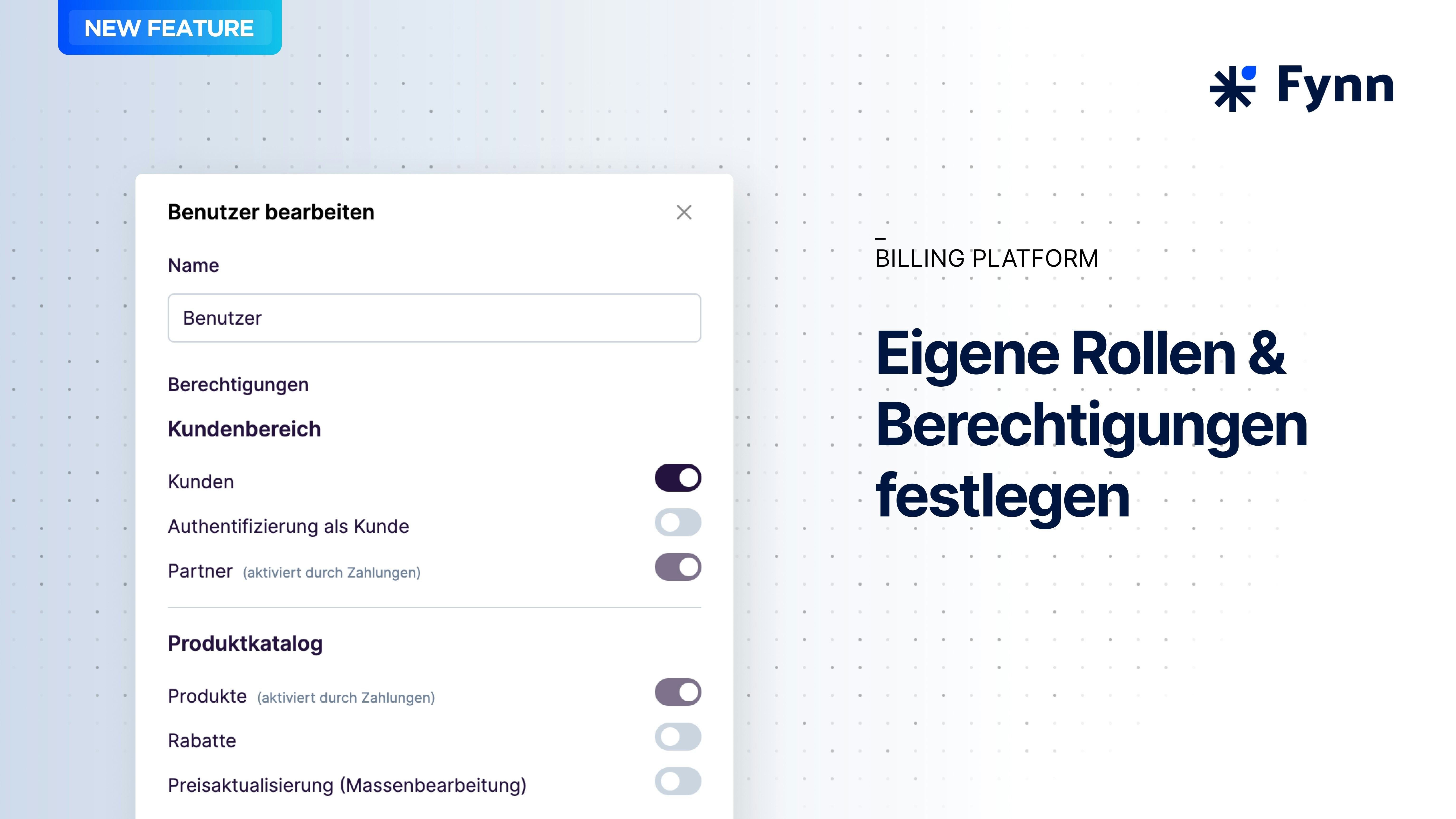 Folgende Webhooks wurden hinzugefügt:feature.created- Ein neues Feature wurde erstellt.feature.updated- Ein Feature wurde aktualisiert.feature.archived- Ein Feature wurde archiviert.entitlement.state.updated- Die aktuell gültigen Features für ein Abonnement wurden aktualisiert (z.B. durch: eine Änderung des Abonnements; der Features; ein Feature wurde durch “gültig ab” / “gültig bis” hinzugefügt oder entfernt; ein Produkt wurde gekündigt / angepasst und entsprechend dessen Features).